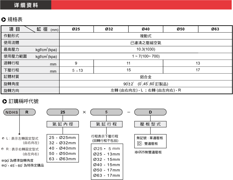 產(chǎn)品名稱:NDHSR(L)系列 氣壓式轉(zhuǎn)角下壓缸