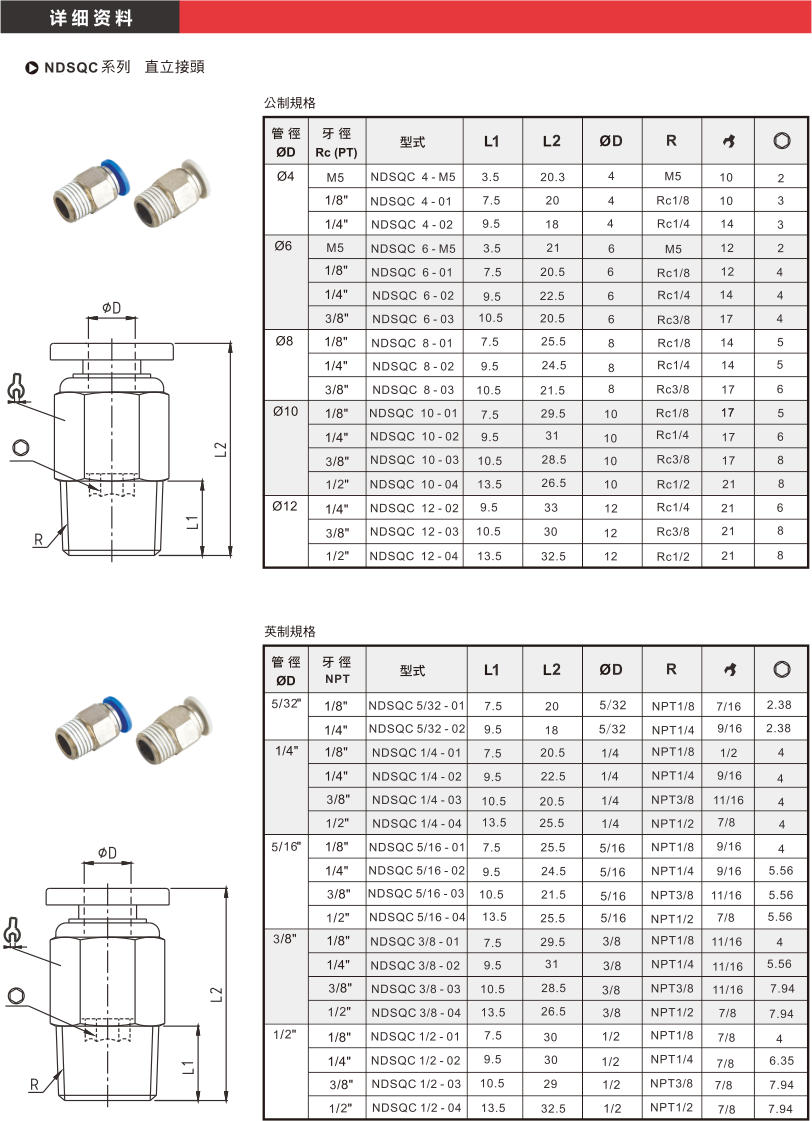 產(chǎn)品名稱:NDSQC系列直立接頭 (外牙)