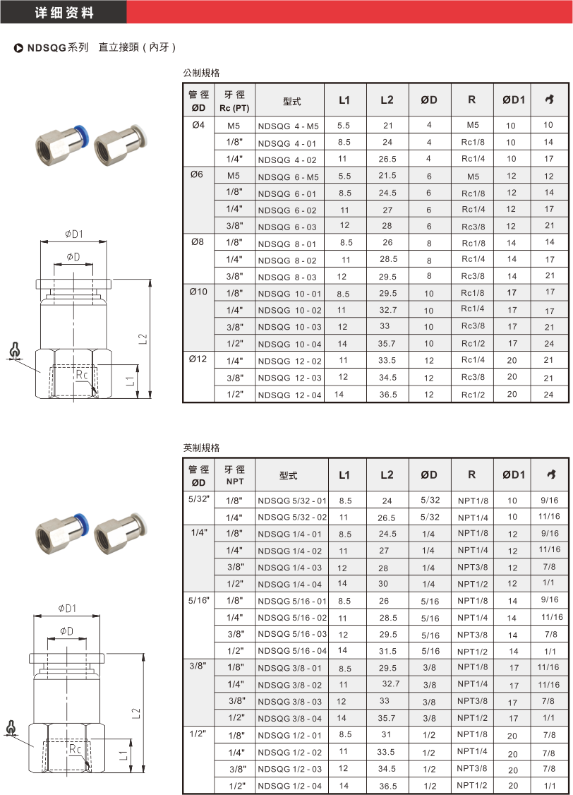 產(chǎn)品名稱:NDSQG系列 直立接頭 (內(nèi)牙)
