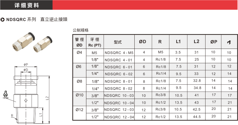 產(chǎn)品名稱:NDSQRC系列 直立逆止接頭