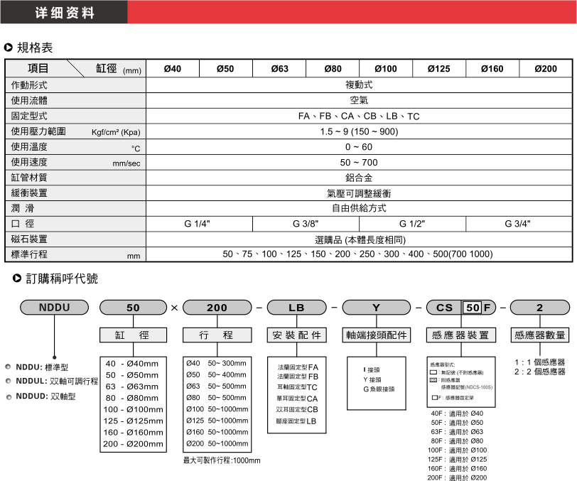 產(chǎn)品名稱:NDDU系列 標(biāo)準(zhǔn)型氣缸